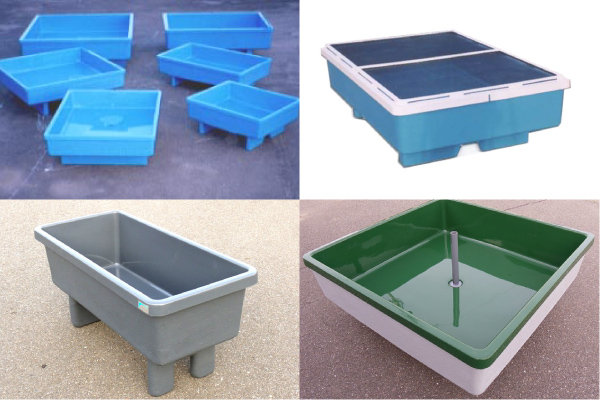 特許を取得している圧送式水洗便器や仮設トイレ、らんちゅう飼育・観賞用のFRP水槽を製造しています。